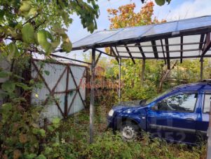 Кроме дома на участке расположены уличный туалет, место для автомобиля с установленным на нем металлическим навесом. Есть сложенный, разобранный бревенчатый дом из которого можно построить баню.