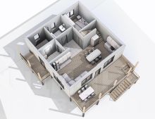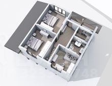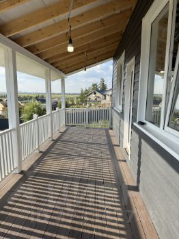 В доме 4 спальни по 15м2, 2 санузла c ванной и душевой кабиной, гардеробная комната, балкон, прихожая, котельная, кладовка, чердак и большая кухня-гостиная с выходом на террасу.