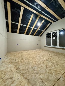 Дом построен, комплектация "Вайт-бокс". Разведены вентиляция, сантехника, электрика, стяжка пола залита, стены обшиты осп+гкл под обои или окраску.