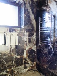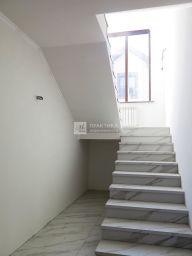 На первом этаже расположена просторная гостиная 24 кв.м. с панорамными окнами и кухня-столовая 16 кв.м. с выходом на теплую террасу 19 кв.м. Также на первом этаже находятся кабинет и СПА зона 36 кв.м. с сауной. По широкой лестнице вы попадаете в квадратный холл второго этажа. На этаже расположены четыре спальни: две по 18,6 кв.м. и две по 12 кв.м. Просторная гардеробная и санузел. Мансардный этаж 85 кв.м. с окнами. Общая площадь дома вместе с застекленной террасой и мансардным этажом составляет 370 кв.м.