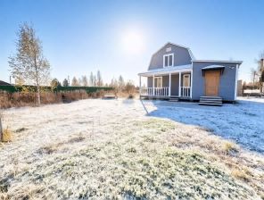 Дом построен в 2015 году и стоит на винтовых сваях. Утепление дома по кругу 100 мм. Участок огорожен забором. На участке имеется хозблок и детский домик.