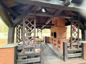Гостевой дом построен в 2008 г., площадью 92,9 кв.м. материал - брус толщиной 200х200 мм, с утеплением снаружи, обшит деревянной доской под имитацию бруса. На первом этаже: прихожая, сауна с купелью, санузел, кухня-столовая; на втором две комнаты, гостиная-бильярд. В поселке есть 2 магазина, Дом Культуры, фельдшерский пункт, начальная школа, колледж, храм. Ближайшие шоссе Новорязанское или Егорьевское, в 35 км от МКАД, в 20 мин езды на авто до ЦКАД и 10 мин до ст. Раменское МЦД-3, в 7 км. полная инфраструктура города Раменское с общественным транспортом до Москвы.
