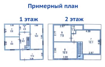 На втором этаже дома находятся: две комнаты ~ 10.9 м² и 7.9 м², просторный холл ~ 15.1 м², и вместительная гардеробная-кладовая.