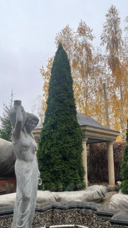 На участке расположены: основной дом, павильон с массивными дорическими колоннами, где можно тепло беседовать с близкими или уединиться с книгой, фонтан, гостевой дом, lounge-зона и теплый гараж на 3 автомобиля.