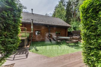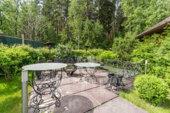 Участок ровный, квадратной формы, по периметру огорожен забором. Дополнительно имеется двухэтажный банный комплекс из северного сруба. В гуще деревьев обустроена зона барбекю с патио и дровяным чаном.