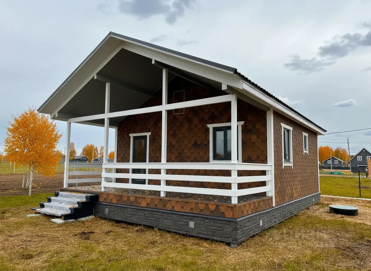 Дом 59 кв. м на участке 6 соток. В доме кухня-гостиная площадью 21 кв. м с выходом на террасу 12 кв. м, комната 12 кв. м, санузел и прихожая. Дом под ключ Дом полностью готов есть все необходимое для комфортного проживания круглый год. Коммуникации: - Вода скважина на участке, водонагреватель, вода проведена в кухню и санузел. В санузле душевая кабина, раковина, унитаз, смесители. - Канализация локальное очистное сооружение. - Электричество 15 кВт, свет, розетки и выключатели. - Отопление конвекторы электрические. Дом: Дом построен по каркасной технологии из пиломатериалов камерной сушки с утеплением 150 мм (стены и перекрытия) и 200 мм (пол и потолок). - Фундамент свайный. - Крыша металлочерепица. - Стены внутри евровагонка, снаружи имитация бруса/фасадная плитка. - Металлическая входная дверь, деревянные межкомнатные двери, пластиковые окна. Участок: - Земля земли сельскохозяйственного назначения для дачного строительства. - Участок 6 соток. - Ограждение евроштакетник с калиткой и откатными воротами.