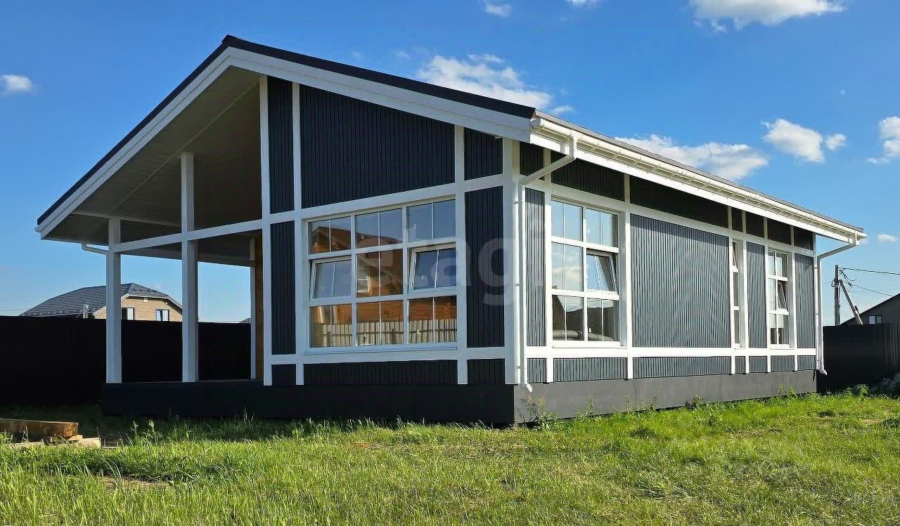 Продается современный дом площадью 100 кв.м расположен на благоустроенном участке 5,5 соток в развитом районе с качественной застройкой. Объект подходит как для постоянного проживания, так и для сезонного использования. Участок правильной формы огорожен надежным забором с металлическими воротами и калиткой, фасадная часть оформлена стильным металлическим штакетником. Район отличается спокойной атмосферой и удобной транспортной доступностью — подъезд к дому выполнен из твердого покрытия, что обеспечивает комфортный доступ в любую погоду.