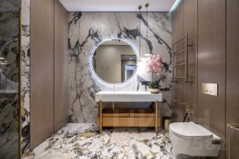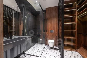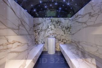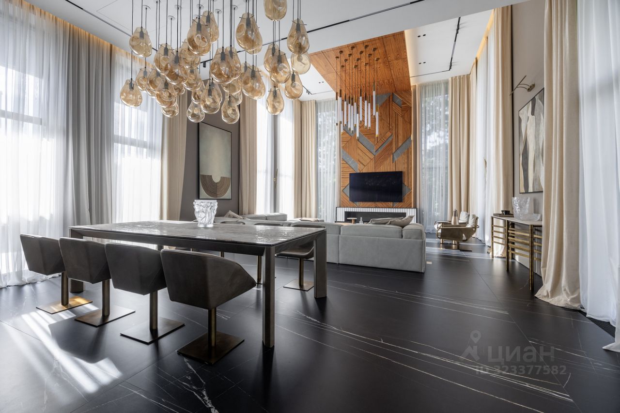 В отделке - исключительно премиальные материалы: кварцит, натуральное дерево и камень. Мебель от брендов Frato и Henge, сантехника CEA и Antonio Lupi, встроенная бытовая техника Bosch и Liebherr, 9 телевизоров Samsung, освещение ЦентрСвет.
