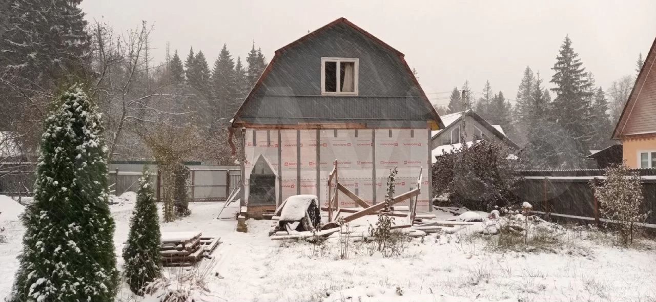 Дом был частично разобран для восстановления по другому проекту, после демонтажа были произведены работы по усиливанию фундамента, заменены напольные лаги, замена несущего бруса по периметру стен, уложены новые половые доски с устройством утеплителя и покрыты ОСБ, сделана канализация и установлен септик на 4 человека, установлены панорамные окна на первом этаже.