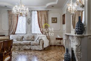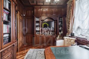 Интерьеры выдержаны в духе элегантной классики с акцентом на качество и натуральность материалов. В отделке использованы редкие породы дерева, художественный паркет, массивные двери и лепнина ручной работы. Центральным элементом гостиной стал камин XVIII века — подлинное произведение искусства, придающее дому индивидуальность и характер. Светлая палитра оттенков, натуральные фактуры и мягкое освещение создают ощущение тепла и уюта, располагая к неспешной жизни в кругу семьи. Вся мебель выполнена на заказ, а техника подобрана из премиальных линеек мировых брендов.
