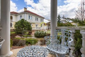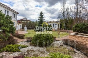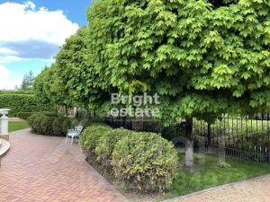 Архитектурное решение сочетает изысканность традиционной школы и лаконичность современных форм. Элегантный фасад, отделанный в спокойных природных тонах, подчеркивает гармонию с окружающим ландшафтом. Территория дома площадью почти 20 соток оформлена в парковом стиле: профессиональные дизайнеры разработали концепцию благоустройства, где каждый элемент — от дорожек до декоративных деревьев — подчинён идее уединённого частного пространства. Здесь высажено более пятидесяти видов растений, что создаёт естественную, живую композицию и формирует атмосферу загородного парка.