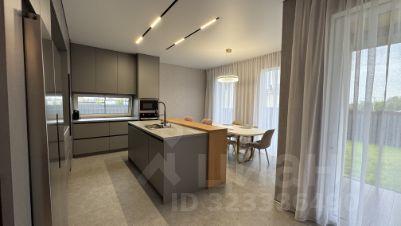 Индивидуальная кухня, встроенная под потолок, с островом, барной стойкой и кладовой. Вся техника встроена. Эстетику дополняет стеклянный барный шкаф с подсветкой. И большой обеденный стол, который поместит даже самую большую семью.