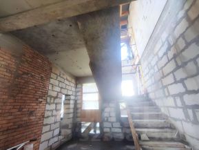 Круглогодичный подъезд. Дороги внутри поселка, а также по улице асфальтированы. Зимой производиться регулярная чистка дорог. На территории поселка два въезда, Южный для легковых автомобилей Северный для легковых и грузовых автомобилей. Управление воротами осуществляется собственниками круглосуточно путем мобильного приложения или звонка. Имеются входные калитки для пешего доступа, так же контролируются системой СКУД. Дом для постоянного проживания (прописка). Дом 2023 года постройки, без внешней и внутренней отделки. Фундамент-монолитная УШП плита 350мм усиленная по периметру и под все несущие стены балками 400х350мм. Стены выполнены из стенового блока BONOLIT толщиной 400мм. Над всеми окнами и дверными проемами залиты монолитные перемычки, выдержит любые нагрузки. Перекрытие между этажами выполнено монолитной ЖБ плитой толщиной 160мм с использованием арматуры 12мм в две сетки. Перекрытие усилено несущими балками 200х200мм. Для дополнительной гидроизоляции перекрытия в состав бетона была добавлена Гидроизоляционная проникающая смесь Пенетрон. Лестничный марш между этажами -монолитный. Просчитаны высота и ширина ступеней для очень комфортного подъёма и спуска, на одном дыхании. Так же в процессе монтажа лестничного марша были заложены провода под освещение каждой ступеньки, с возможностью установки элемента умного дома для подсветки. Дом правильно посажен на участок. Солнце весь день обогревает все основные помещения дома, а главное эксплуатируемую лоджию, на которой можно загорать в приватной обстановке. Площадь лоджии позволяет разместить на ней не только лежаки для загара, но и всевозможные элементы активного отдыха, такие как стол для настольного тенниса, мини гольф, или просто качели для приятного отдыха, не покидая территорию дома. Высота потолков 1-го этажа без отделки-3.5 м Первый этаж дома содержит: 3 изолированные спальни площадью-18.5 м, ванная-8м, сан/узел-3 м, кухня-гостиная 55.5 м, открытая терраса ( с возможностью остекления )-16.91 м, котельная-7 м, просторный холл-26.8. Второй этаж дома содержит: спальня-28.5 м, ванна 8.9 м, холл-5.75м.