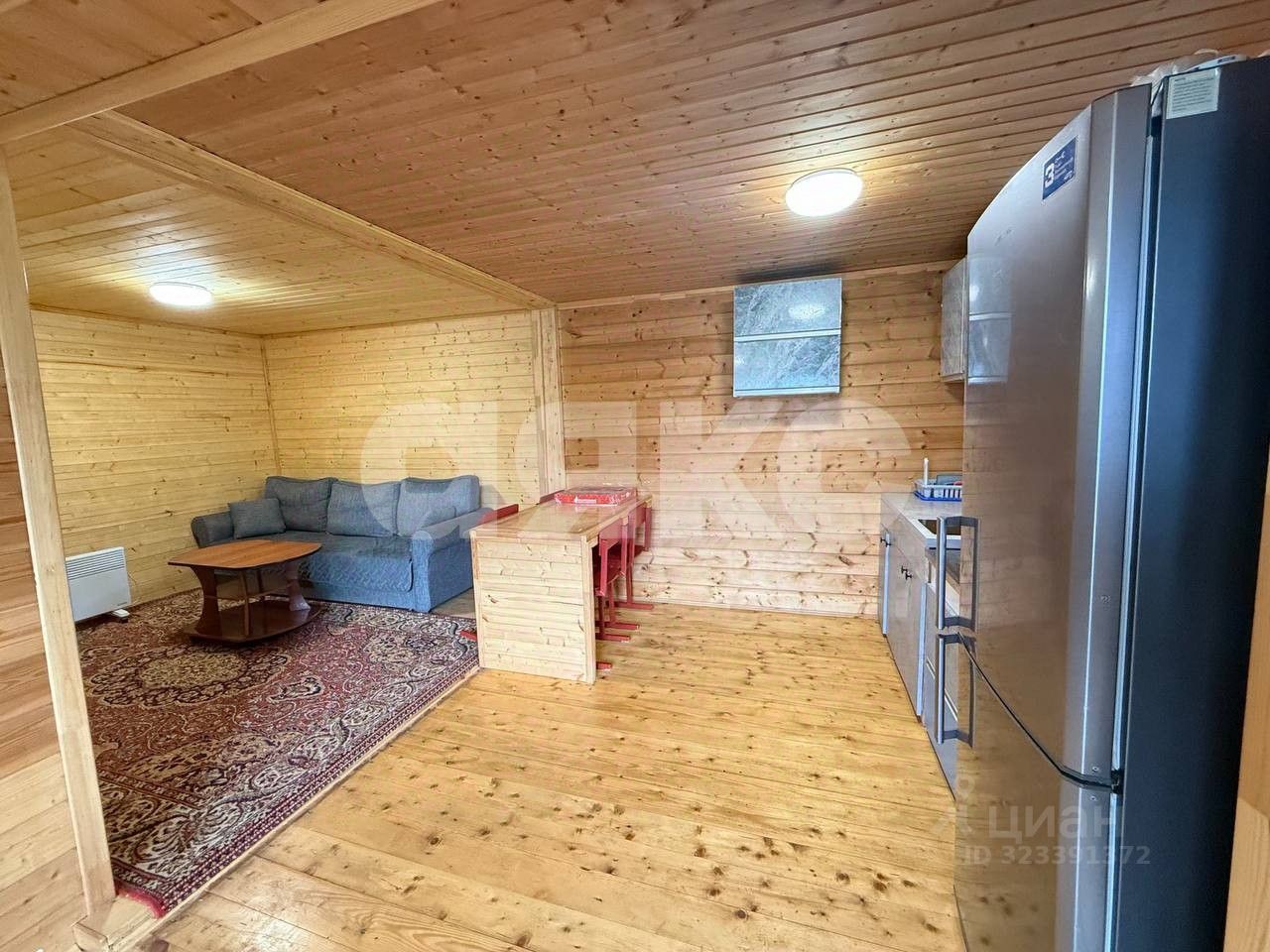 Дом выполнен из бруса, два этажа, на первом этаже большая кухня гостиная, спальня, на втором этаже большая полноценная спальня.