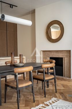 в отделке использованы исключительно натуральные экологичные материалы: натуральный камень - травертин и натуральное дерево - дуб,
