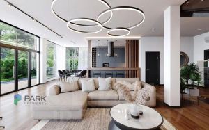 Эксклюзивный дом, где современный минимализм встречается с инновационными инженерными решениями. Пространство, воплощающее идеал жизни для ценителей лаконичного дизайна и умного функционала.
