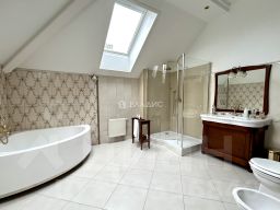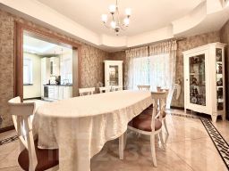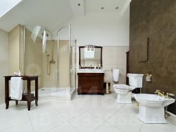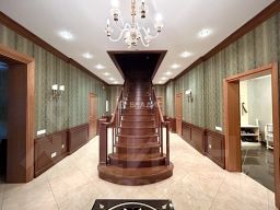 Три этажа, семь комнат, сауна, комната отдыха для гостей и персонала, 654,2 кв. м — пространство для жизни вашей семьи. Дизайнерский ремонт, высокие потолки (3 м) и шесть раздельных санузлов делают этот дом комфортным для проживания.