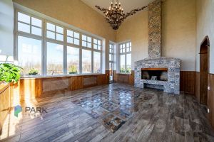 Использованы натуральные отделочные материалы -дубовый паркет, лиственница.