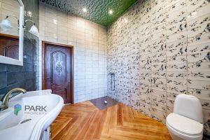 Газ, канализация, водоснабжение-все центральное. Потолки 3.30. На территории расположена русская баня. Парник. Навес на 2 м/м.