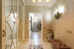 Дом построен по авторскому дизайн проекту. Качественная и дорогая отделка с использованием натурального дерева, мрамора и керамогранита, премиальное освещение во всём доме. Дом полностью меблирован итальянской мебелью. Ванные комнаты также оборудованы сантехникой итальянского производства. Кухня укомплектована премиальной бытовой техникой. Котельная оснащена надёжным оборудованием. Установлена система умный дом, теплые полы и охранная сигнализация. Все помещения оснащены системами кондиционирования. В гостиной-столовой установлен дровяной камин. По периметру дома большая крытая веранда для отдыха с дровяным мангалом и печью. Тёплый гараж.