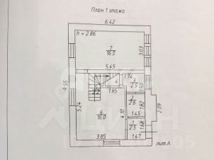 На первом этаже тамбур, санузел, кухня, комната 15,5 м2.