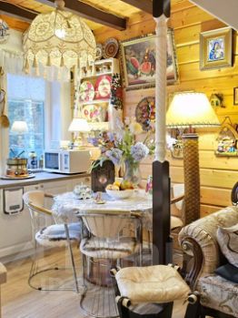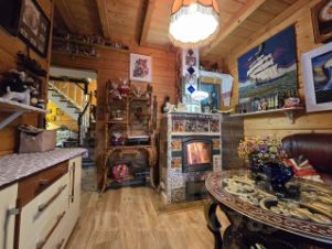Все потолочные абажуры в доме ручной работы выполнены на заказ! Часть мебели антиквариат. 1 этаж- Большая кухня -гостинная, каминная комната с камином - печью украшенным старинными изразцами ручной работы и старинными кожанными диванами. Котельная.