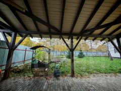 На благоустроенной территории расположен гостевой дом, готовый под чистовую отделку, парковка с навесом, мангальная зона, теплица и разнообразные зеленые насаждения.