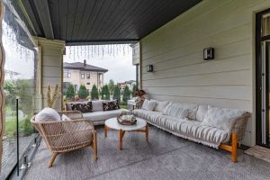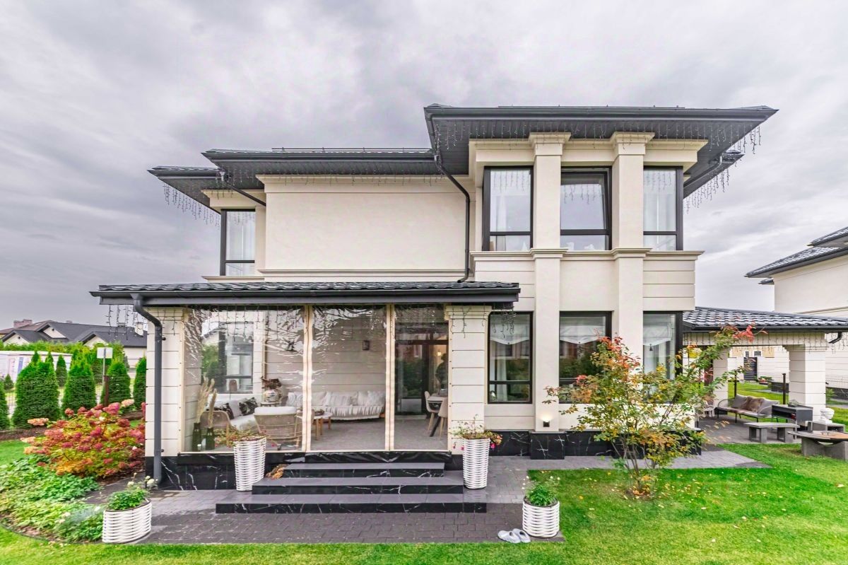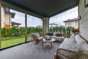 На участке выполнен профессиональный ландшафтный дизайн в современном стиле. Для отдых на свежем воздухе оборудована уютная меблированная терраса.