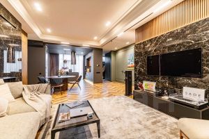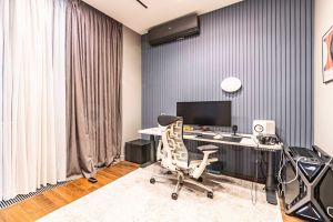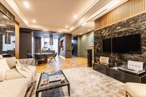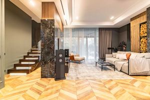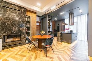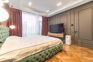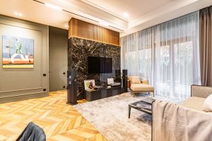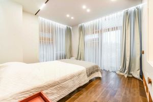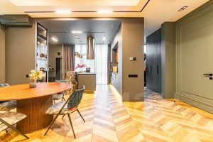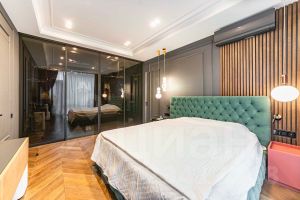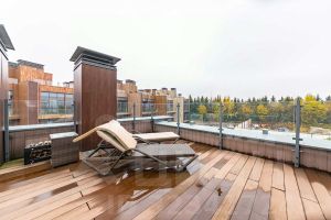 Дизайнерский ремонт с качественными материалами: дубовый шпон, керамогранит из Италии и Испании. Удобства: техника Neff, панорамные окна, теплые полы, климат-контроль. На крыше зона отдыха с мебелью и душем.