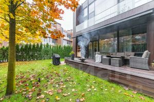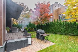 Приватный ухоженный участок с барбекю в окружении туй. Поселок расположен в экологически чистом районе, всего в 20-25 минут от Москвы. Стеклянные фасады и натуральные материалы создают гармонию с природой.
