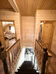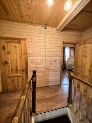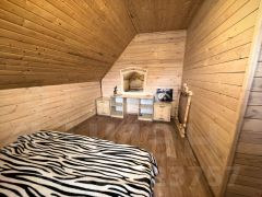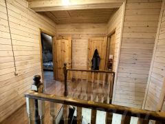 Планировка продумана для комфортного проживания семьи. На первом этаже расположены просторная кухня, гостиная и санузел, второй этаж занимают три изолированные комнаты и гардеробное помещение. Вся мебель выполнена на заказ в едином стиле из качественных материалов. Большие окна обеспечивают обилие естественного света, а эффективная система отопления поддерживает тепло даже в холодное время года.
