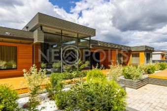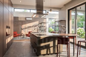 • Высокие потолки: от 3,40 до 4,8м. и панорамное остекление наполняют дом естественным светом.