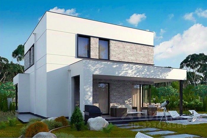 Фасад - декоративная штукатурка и искусственный камень.