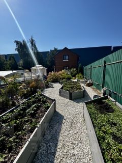 Парковка: Большая площадка для нескольких автомобилей с двумя въездами и двумя воротами (откатные и распашные).