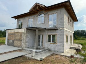 Выполнена отмостка по периметру дома, залита плита перед гаражом, плита перед входом в дом, сделана дренажная система для отведения воды,стоит металлический каркас забора по периметру земельного участка, с фасада монолитная лента. Электричество в доме 15 КВт. Скважина 120 метров, канализация-септик, газ по границе, всего 3 соседа рядом и вокруг лес, очень уединенное место, дом строился для проживания большой семьи, собственник может передать строительную организацию с которой сотрудничает по строительству для дальнейшего ремонта , участок правильной формы 20м на 50м, въезд на участок с двух сторон, на участке есть место для гостевого дома и бани, сразу после участка пляж, санаторно-курортная зона, есть возможность оборудовать пирс для лодки.