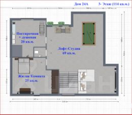 Лофт-студия 70 м² с высотой потолков до 4 метров (идеальное место для домашнего кинотеатра, бильярда или творческой мастерской), комната отдыха/постирочная, душевая и с/у, гостевая спальня.