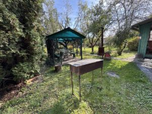 Дом 118кв.м : кухня, 2 комнаты, 2 спальни на 3м этаже (требуют ремонта). С/у на улице, есть баня, беседка с мангальной зоной.