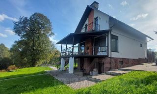 В доме на втором этаже 3 комнаты, 2 санузла. На первом этаже гардеробная, кухня - гостинная , душевая и санузел. Очень оригинальная кухня с винным холодильником. В гостинной расположен камин . Можно сидеть у камина и смотреть на воду, любоваться восходом и закатом солнца. Выйдя на террасу можно пожарить мяско