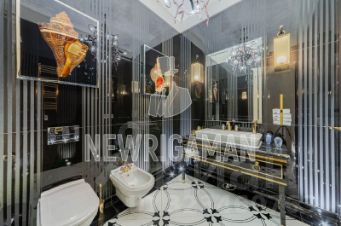 ЛОТ 56502 МТ Продажа загородного дома общей площадью 900 кв.м. Новорижское шоссе, 19 км от МКАД. Коттеджный поселок Миллениум Парк. Удивительный по красоте и функционалу особняк построен в 3 этажа в стиле современной классики. VISIONNAIRE, FENDI, BAROVIER&TOSSO - вот лишь небольшой перечень брендов отделки, света и мебели. Панно Svarovski, шелковые обои, венецианская штукатурка, мрамор - материалы искусно подобраны и виртуозно использованы в интерьере дизайнером-архитектором с мировым именем ! Высокие потолки 4 метра, лифт на 3 этажа. Установлена охранная система с видеонаблюдением и датчиками движения. Просторный участок 31 сотка примыкающий к водному каналу с готовым ландшафтным дизайном на солнечной стороне недалеко от центрального озера. На участке располагается детская игровая площадка и построен гостевой дом с баней площадью 150 кв.м. Дом оборудован всем необходимым для максимального уровня жизни! Использовался редко, строился для себя !