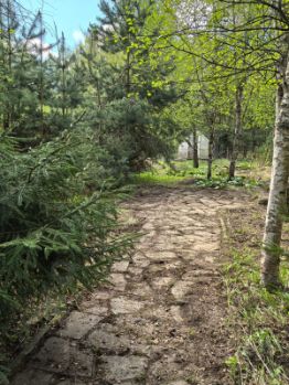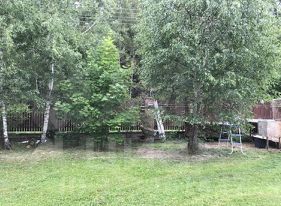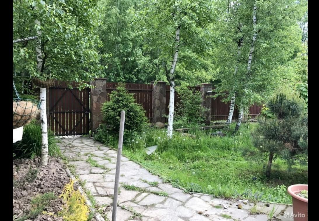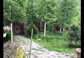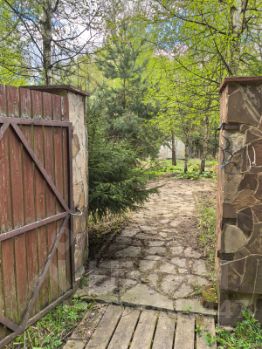 На участке забор с трех сторон, фасадная часть забора на капитальном фундаменте( бетонные столбы отделаны камнем и деревянное наполнение). Небольшой хозблок из бревна, много декоративных деревьев.