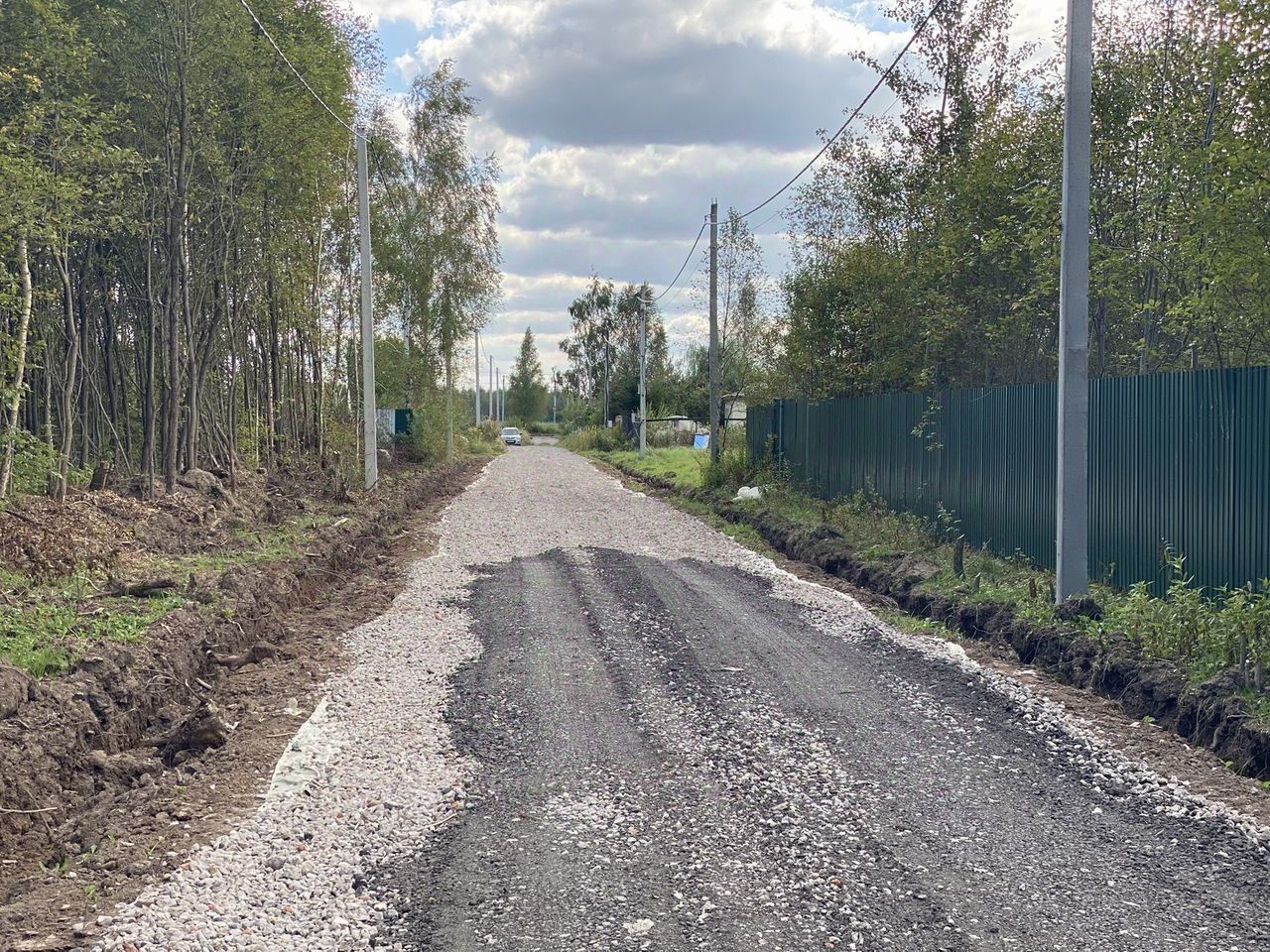 Дорога отсыпана, Электростолб на границе участка. Соседи построились. В собственности больше 5 лет, один взрослый собственник.