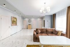 — 1-й этаж: гардеробная, котельная, санузел, просторная кухня-гостиная, 3 спальни,