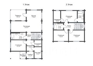2 этаж спальня с гардеробной и с/у, 2 спальни, с/у.