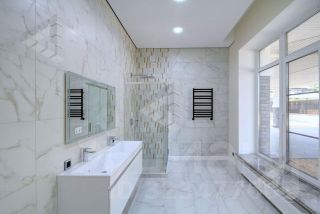 1 этаж: холл, просторная кухня-гостиная с выходом на террасу и задний двор, кабинет/библиотека/гостевая спальня, санузел, постирочная, два хозяйственных помещения, котельная, гараж на 2 авто.