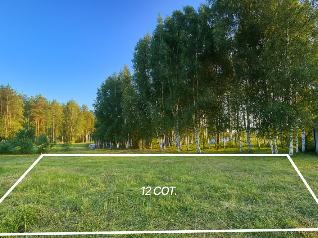 Хороший участок прямоугольной формы в тихом месте, рядом вековой лес и река. Земля ровная, подходит для строительства дома или дачи. Участок сухой, без подтоплений.