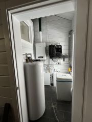 2 санузла. 3 спальни (15/13,5/12,6). Антресоль над двумя спальнями в качестве кабинета или игровой (8,6). Кухня-гостиная 44,5 м2 с возможностью зонирования и непосредственного выхода на террасу. Газ (для кухни и отопления). Теплый водяной пол в прихожей, санузлах, кухне, гостиной. Септик. Вода центральная, поселковая, круглогодично. Сельский тариф электричества. Дом готов к проживанию.