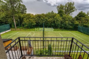 На территории оборудованы теннисный корт, зона барбекю и площадка для автомобилей с навесом.
