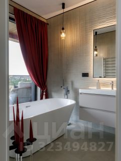- мастер-спальня с панорамным остеклением на улицу и в дом (видно гостиную снизу), личным гардеробом, выходом на балкон и личным С/У. В С/У есть ванная и душевая кабина, выход на балкон из ванной комнаты.