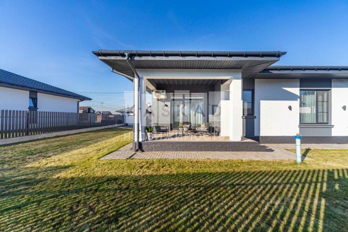 В планировке: кухня-гостиная 22 м² с выходом на террасу, три спальни (в том числе мастер-спальня с гардеробной и санузлом), две ванные комнаты, бойлерная, прихожая и просторный холл. Дом спроектирован так, чтобы каждая комната имела естественное освещение и логичное зонирование.