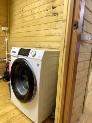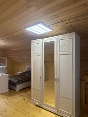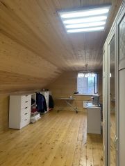 Общая площадь 85,7 и веранда составляет 20 метров. 1 этаж кухня гостинная, небольшая гардеробная с/у и ванная.